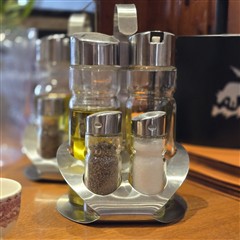 Service Sel Poivre Huile Vinaigre Inox/Verre 10.-